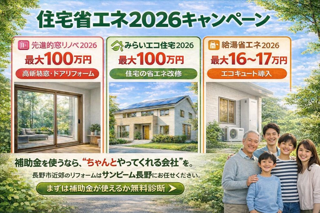 サンビーム長野では、補助金対象工事のご提案から申請手続き、施工までワンストップで対応。